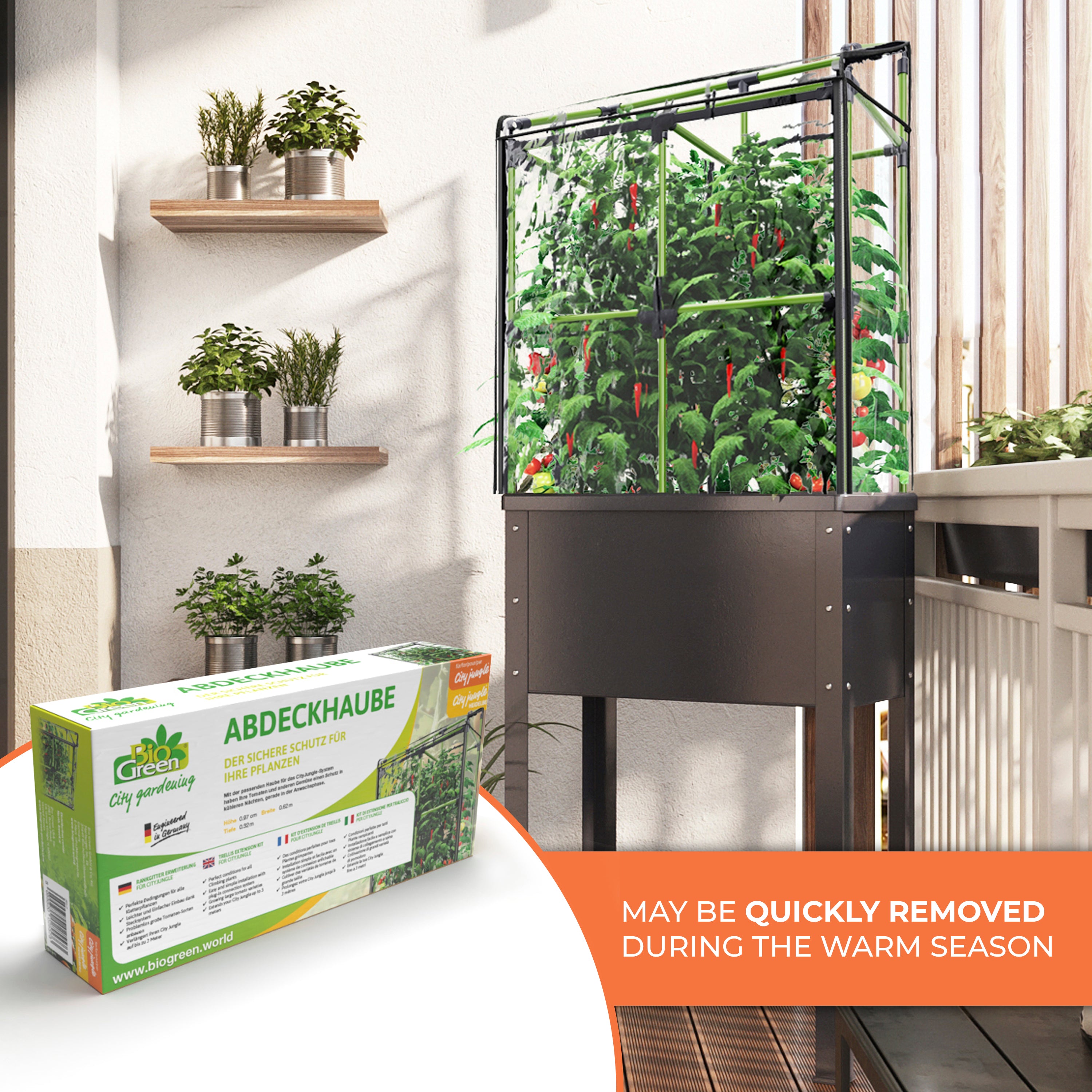 Maximize Your Gardening Potential Extend your gardening horizons with the CityJungle Cover. Now you can experiment with a wider variety of crops and grow even more in your limited space. Create a lush oasis filled with your favorite vegetables, aromatic herbs, and beautiful plants – all under the protective embrace of this versatile cover.