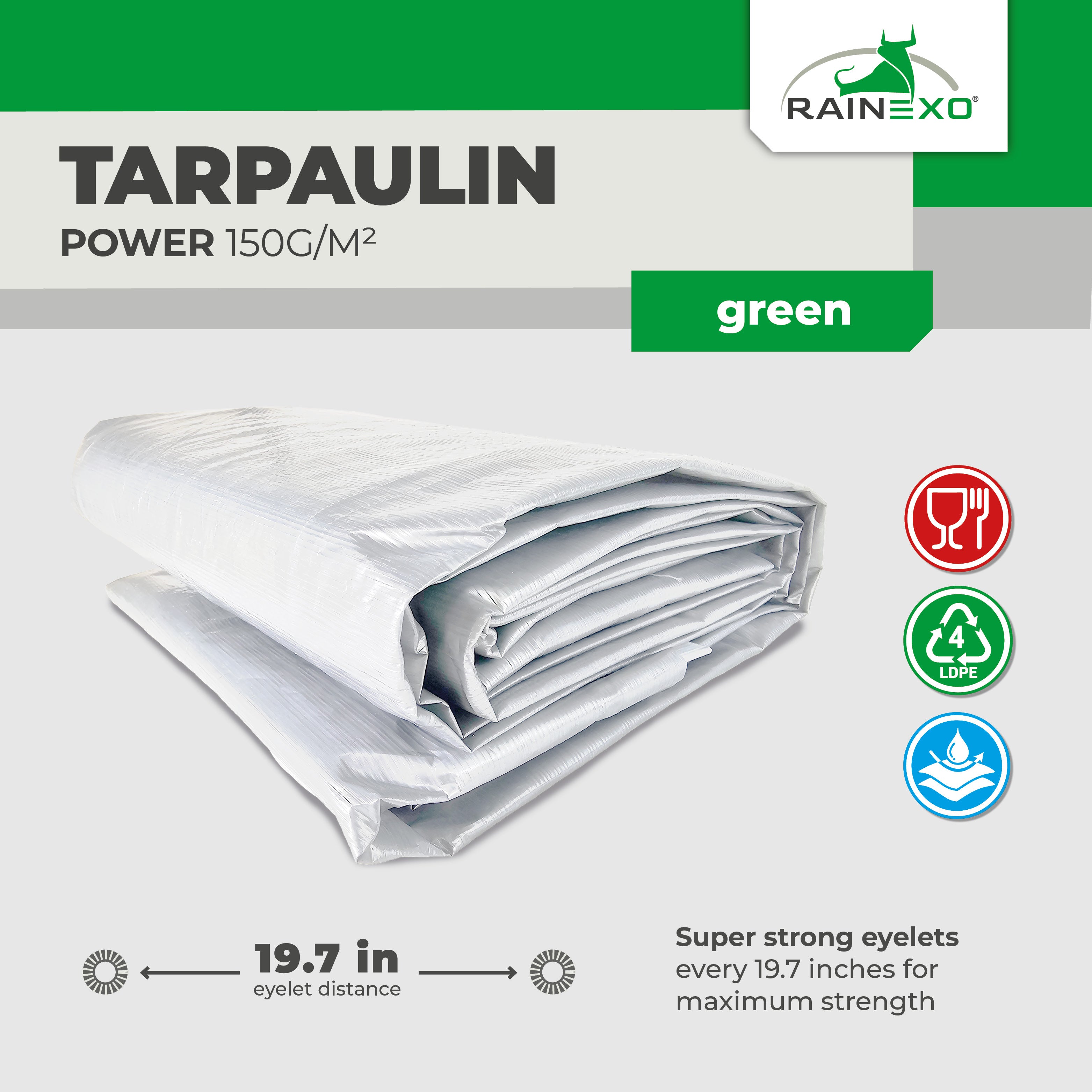 Rainexo tarp 150 GSM is a heavy-duty 3 layers cross-laminated multi-purpose tarpaulin. Due to the unique style of manufacturing Rainexo tarps are strong, durable, and match high-quality standards. This tarpaulin is 100% Waterproof, frostproof, and UV-proof which makes it a great choice for indoor and/or outdoor use at any season and weather conditions. Ultrasonically-welded eyelets provide better tie-down possibility and protection for every purpose. Rainexo tarp comes in two color varieties: translucent and green/blue variant.